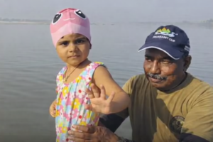 देवेंद्र भारती की 4 साल की बेटी सत्या भारती ने अपने जन्मदिन पर स्विमिंग करते हुए 21 मिनट 28 सेकंड में यमुना नदी को पार करने का कारनामा कर दिखाया है.