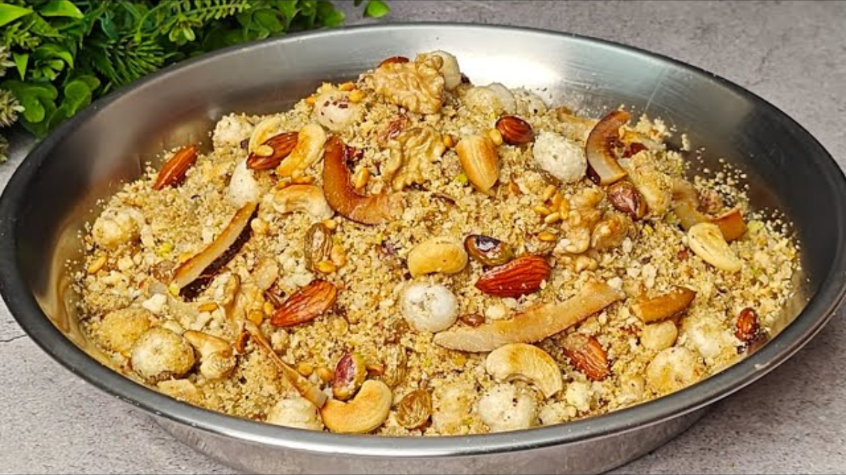 ठंड में स्वस्थ रहने के लिए मेवा खाने की सलाह दी जाती है। इस मौसम में शरीर को अंदर से गर्म रखने वाली चीजें डाइट में जरूर शामिल करनी चाहिए। इसके लिए पंजीरी एक बेहतरीन विकल्प है। अक्सर आपने देखा होगा गर्भवती महिलाओं को बच्चा होने के बाद पंजीरी खाने के लिए दी जाती है। इससे शरीर को पोषण मिलता है और शरीर गर्म रहता है। ठंड से बचने के लिए आप भी पंजीरी बनाकर स्टोर कर सकते हैं। खास बात ये है कि पंजीरी को कम घी में भी बनाया जा सकता है। जबकि इसी पंजीरी के लड्डू बनाकर खाएंगे तो इसमें बहुत ज्यादा घी डालना पड़ेगा। पंजीरी एक हेल्दी ऑप्शन है। इसमें सारे ड्राई फ्रूट्स, सौंठ, बीज, काली मिर्च, मखाना, आटा, देसी घी, गुड़ की शक्कर और गोंद डालकर बनाया जाता है। फटाफट नोट कर लें सर्दियों में खाई जाने वाली पंजीरी की रेसिपी।