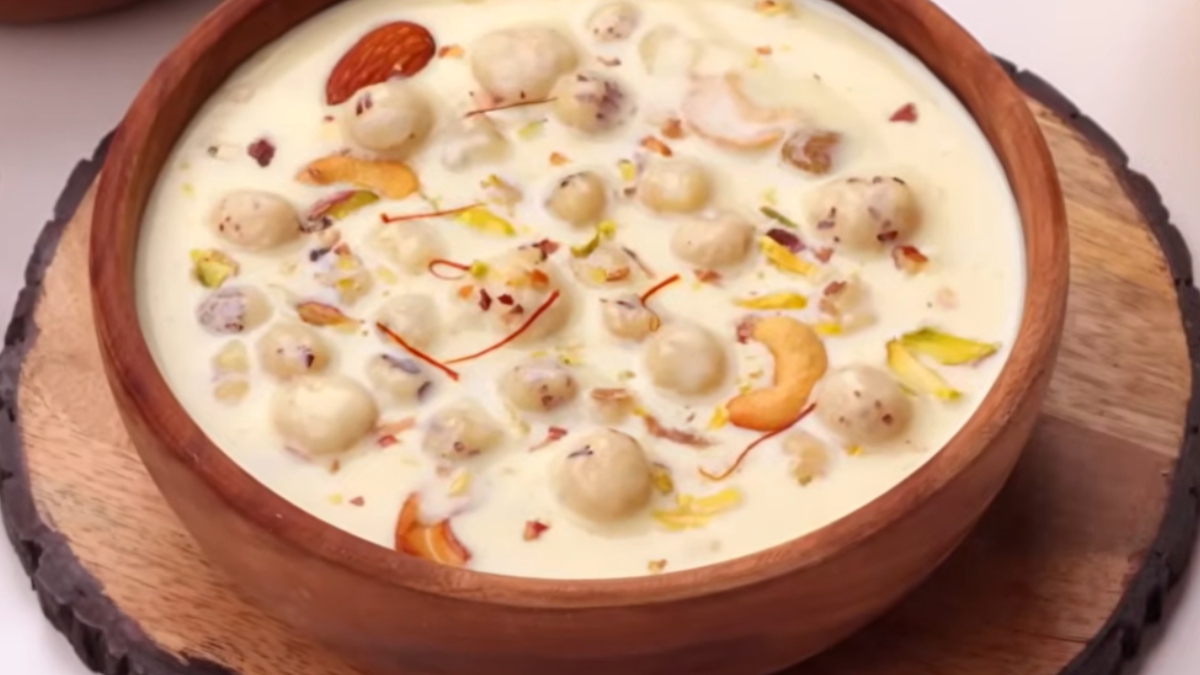 क्या आपने कभी मखाने की खीर खाई है? अगर नहीं, तो आपको कम से कम एक बार इस रेसिपी को जरूर ट्राई करके देखना चाहिए। पोषक तत्वों से भरपूर मखाने की खीर को बनाने में ज्यादा समय भी नहीं लगता है। आपकी जानकारी के लिए बता दें कि मखाने की खीर बनाने के लिए आपको 2 कप मखाने, एक लीटर फुल क्रीम दूध, 4 चम्मच चीनी, 2 छोटी चम्मच घी, एक छोटी चम्मच इलायची पाउडर और बारीक कटे हुए ड्राई फ्रूट्स की जरूरत पड़ेगी।
